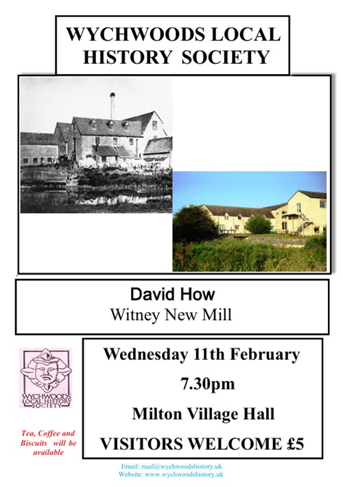 Our series of WLHS meetings continues on Wednesday 11th February in Milton-u-Wychwood village hall at 7.30pm, we welcome David How, Chairperson for the Witney Museum, who will present a history of Witney’s New Mill. >> Details here