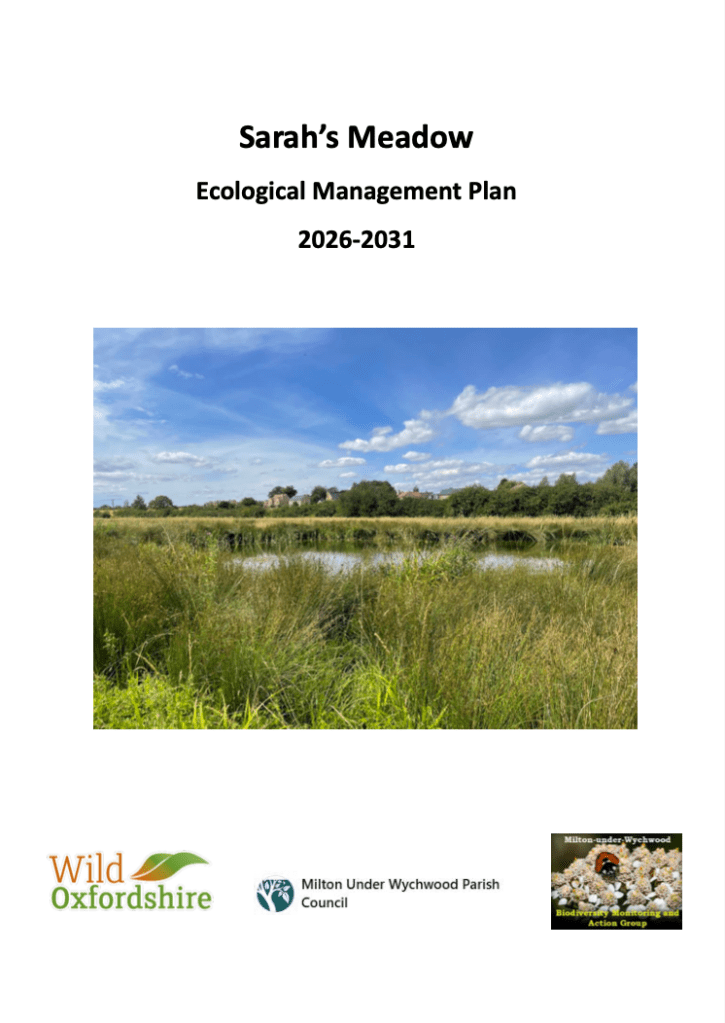 Sarah’s Meadow is situated within the Cotswolds National Landscape, previously referred to as the Cotswolds Area of Outstanding Natural Beauty (AONB). It holds no formal local or national conservation status and is designated as Local Green Space (LGS). The freshwater habitats, grassland and hedgerows within Sarah’s Meadows and neighbouring land are recognised as an important blue-green corridor within the local landscape (Milton under Wychwood Neighbourhood Plan, 2023). This management plan aims to build on Sarah Olney’s vision for the site to create a natural landscape, whilst providing a valuable green space for the community.