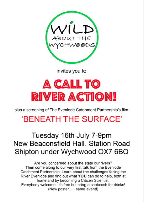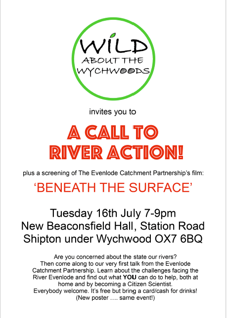 ‘Wild about the Wychwoods’ has an event on Tuesday 16 th July, New Beaconsfield Hall, 7-9 pm with a showing of an excellent film by the Evenlode Catchment Partnership, ‘Beneath the Surface’ – ‘both shocking and hopeful’.